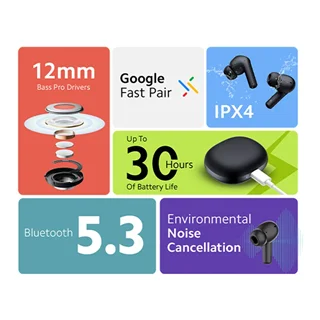 سایر مشخصاتابعاد و وزن ایربادها (هرکدام): 31.1×20.9×22.5 میلیمتر و 3.65 گرم / ابعاد و وزن محفظه شارژر: 63.2×53.4×24 میلیمتر و 34.7 / ظرفیت باتری ایربادها: 34 میلیآمپر ساعت / ظرفیت باتری محفظه شارژر: 440 میلیآمپر ساعت